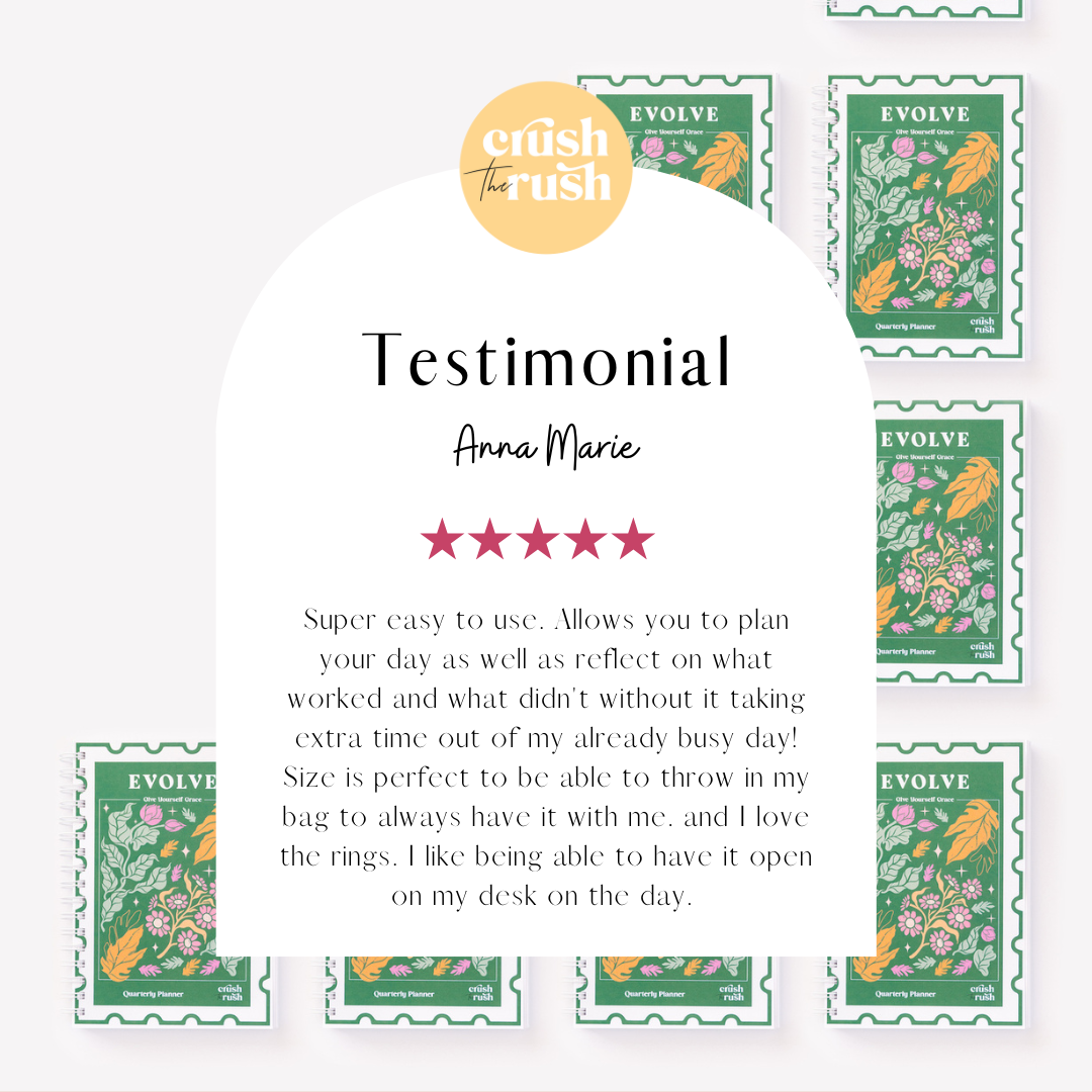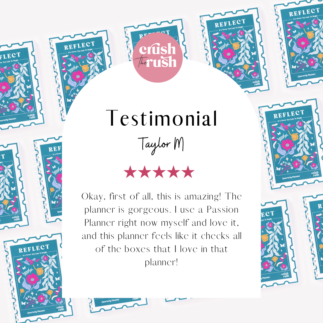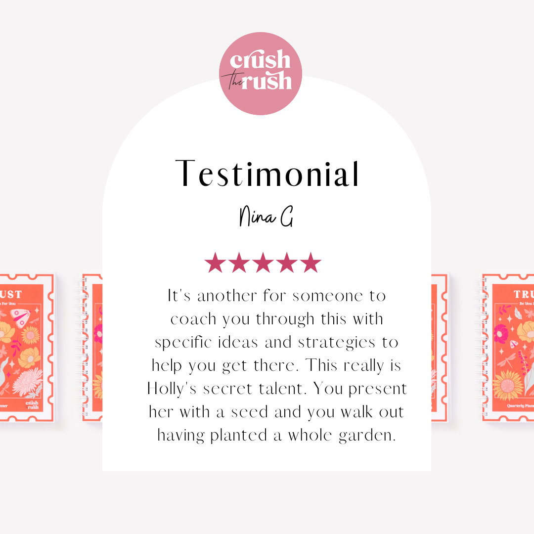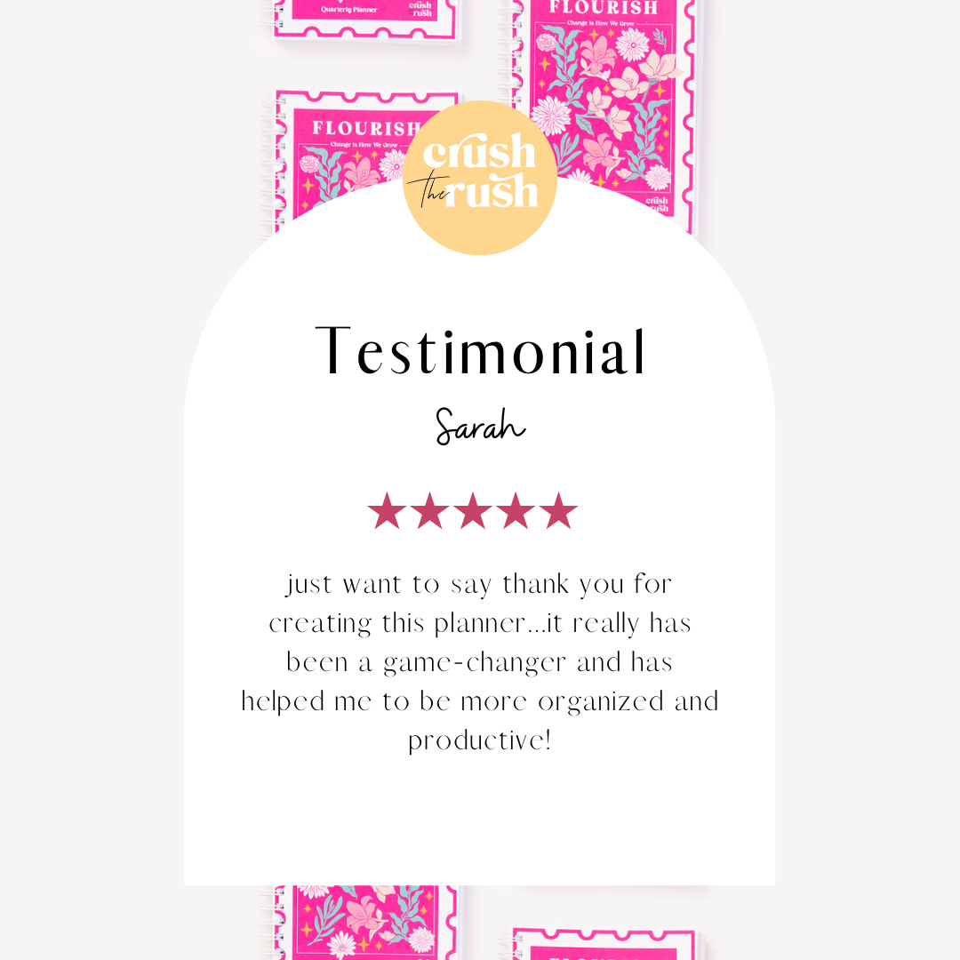 The Crush the Rush quarterly planner (and the community behind it) is the most powerful tool you will find when it comes to finding that time freedom you crave.